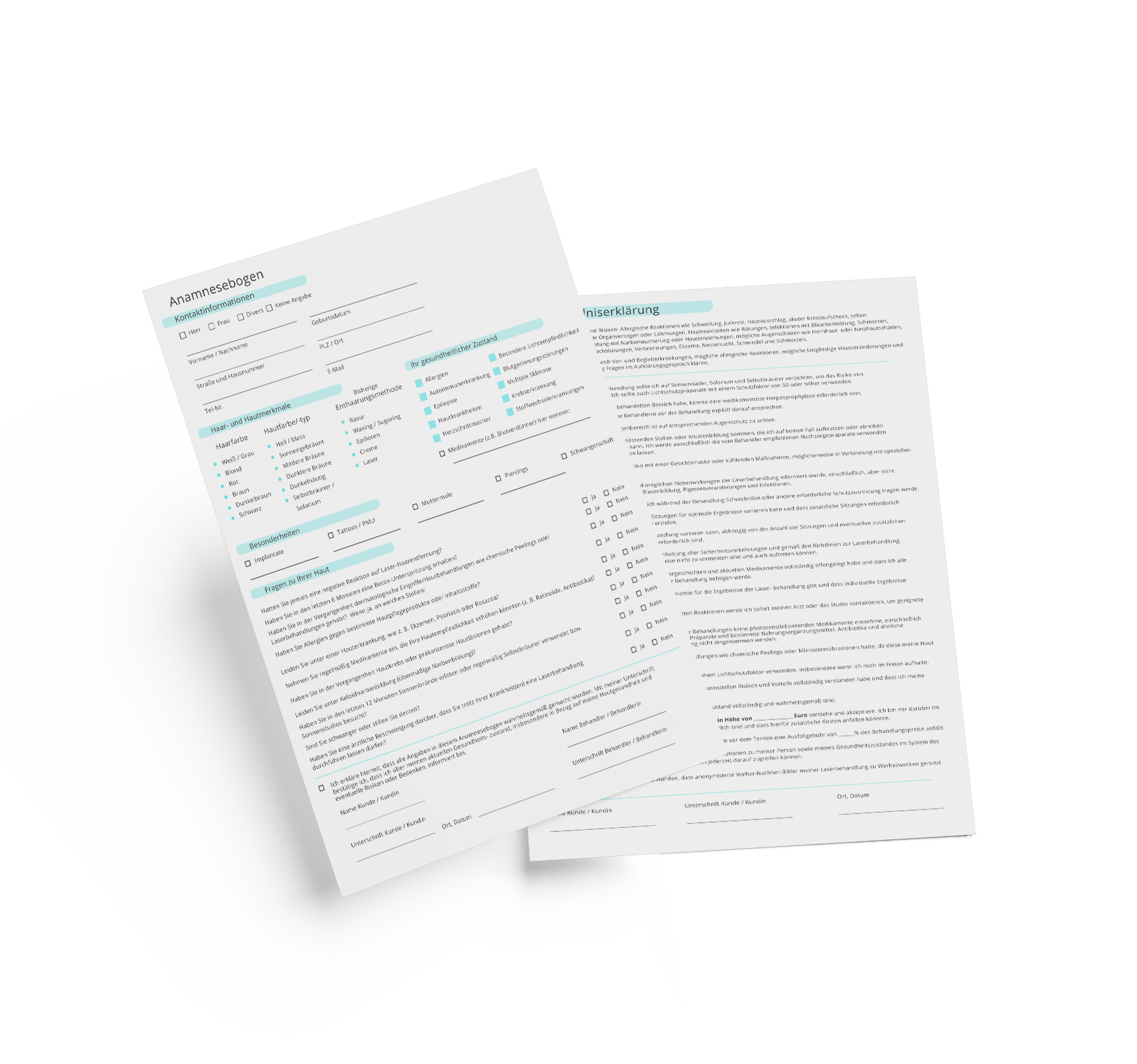 Anamnesebogen & Einverständniserklärung (türkis) – Digitaler Download